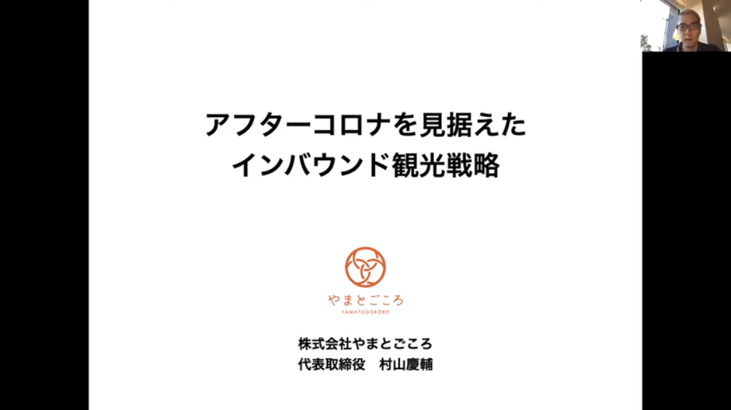 岡山県の外国人観光客誘致推進セミナー「アフターコロナ時代に向けたインバウンド戦略」に登壇し、「afterコロナを見据えたインバウンド観光戦略」のタイトルで、岡山県内の自治体、観光協会、DMO、観光関係者に向けて講演。今こそインバウンドに取り組むべき理由とやるべきことを中心にお話ししました。