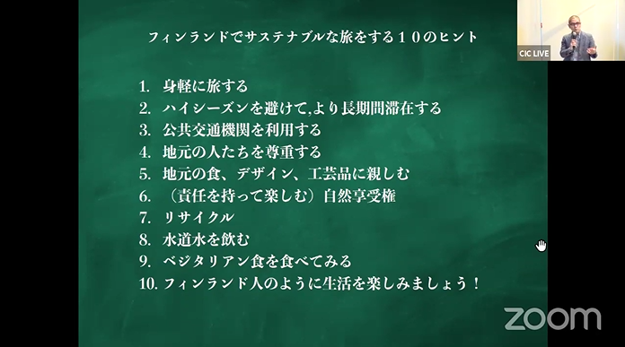 5部構成のうち、第四部「観光と食のサステナビリティ」に、国際ガストロノミー学会 日本代表の山田 早輝子氏とともに登壇し、リジェネラティブ・トラベルが新しい概念になりうるとの考えを中心に意見を展開。